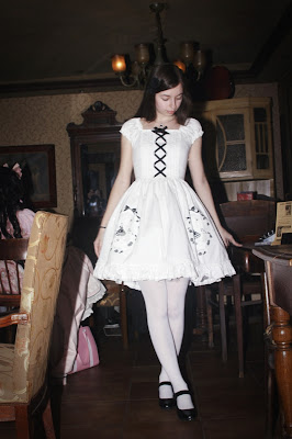 sukienka i gorset stworzone przeze mnie, strój inspirowany postacią Sally z Nightmare Before Christmas i Lolita Fashion.